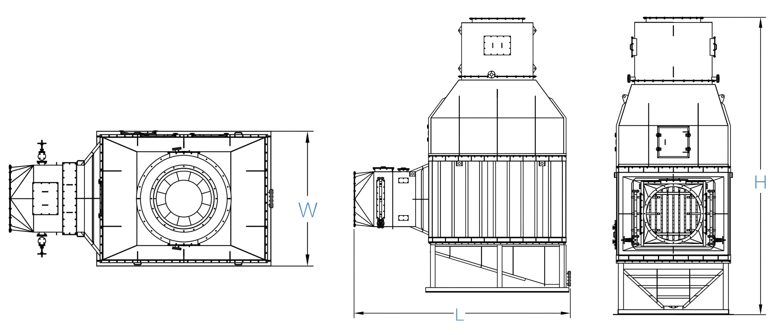 | L 25 | 77500-97500 | ≤1800 Pa | 75-125 | Ф1220 | Ф1220 | DN100 | DN200 | 4770*3170*6760 |