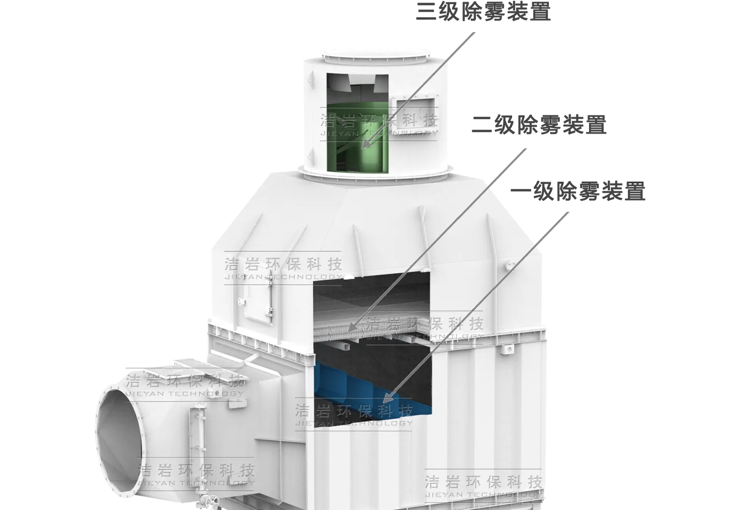① 三级旋流深度除雾