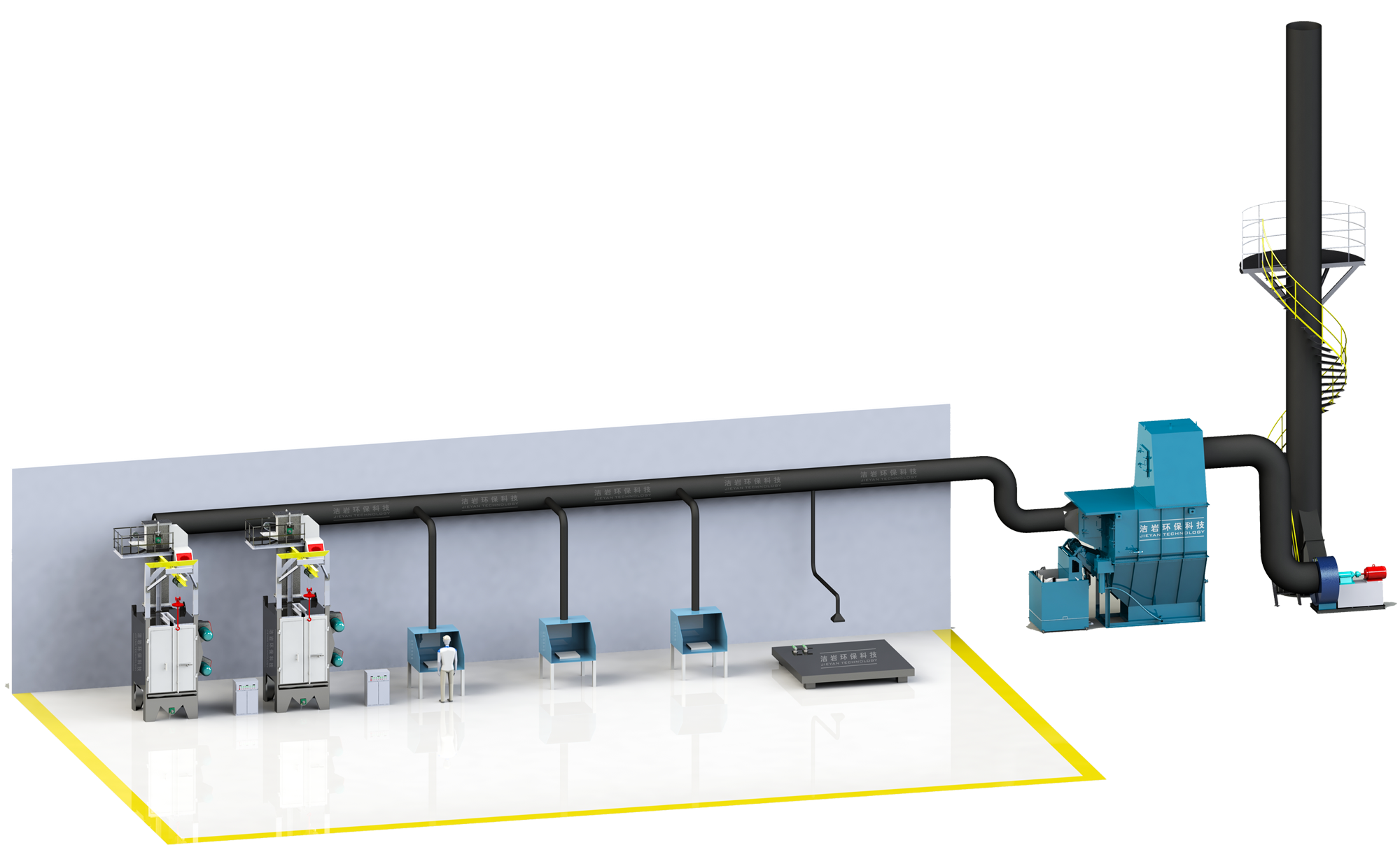 采用HDC高效离心湿式除尘器,对打磨抛光粉尘进行收集,利用专业设计的风罩,对铝镁粉尘的收集率达95%以上。